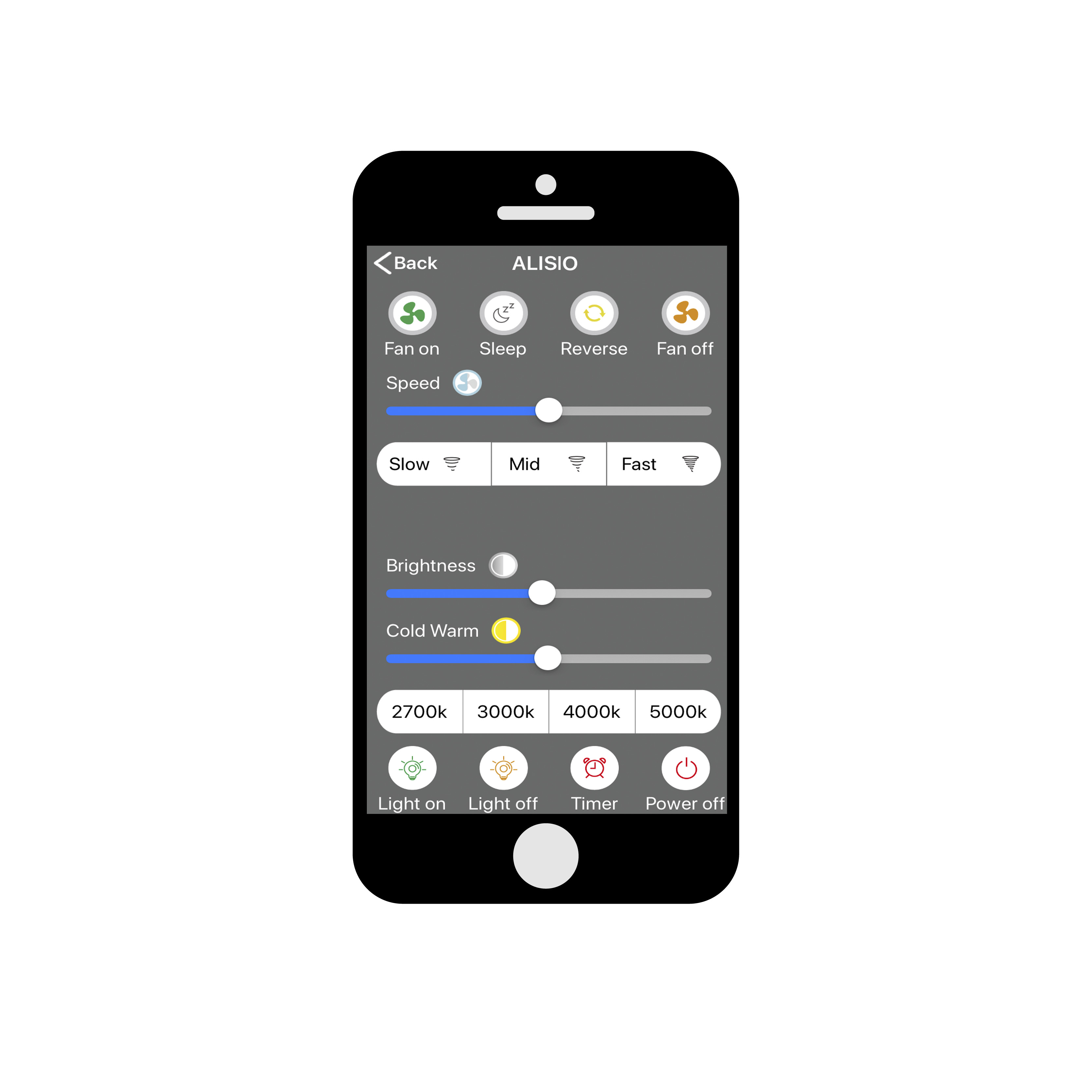 Valaisinta ja tuuletinta voi säätää mukana tulevalla kauko-ohjaimella tai älypuhelimella.