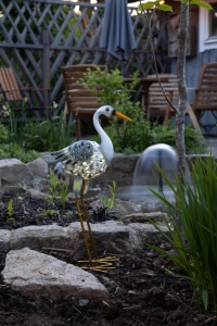 Aurinkokennolla toimiva koristehaikara lämpimän valkoisella LED-valolla.