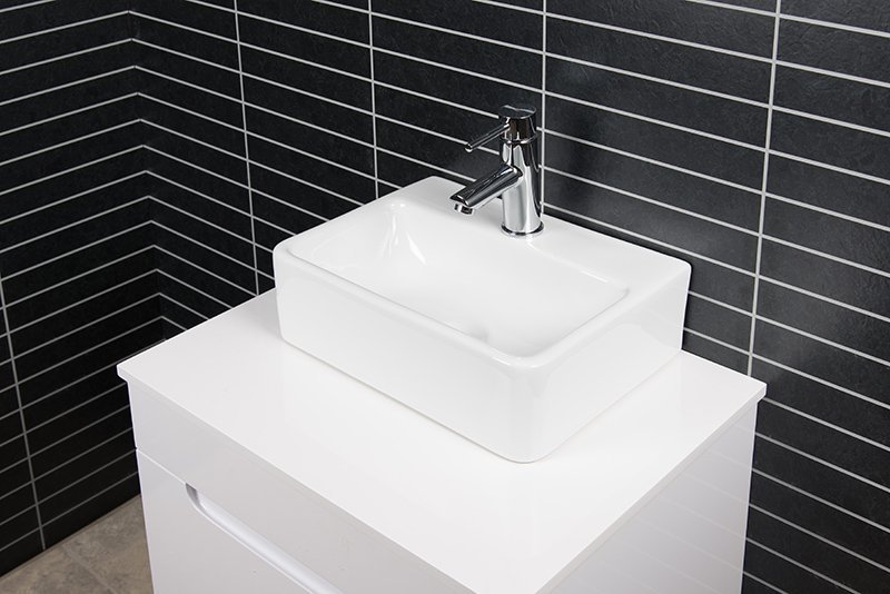 Suorakaiteenmuotoinen Beja on posliinista valmistettu, tason päälle asennettava malja-allas. Siinä on paikka hanalle. Siro allas sopii hyvin pieneenkin kylpyhuoneeseen.