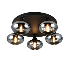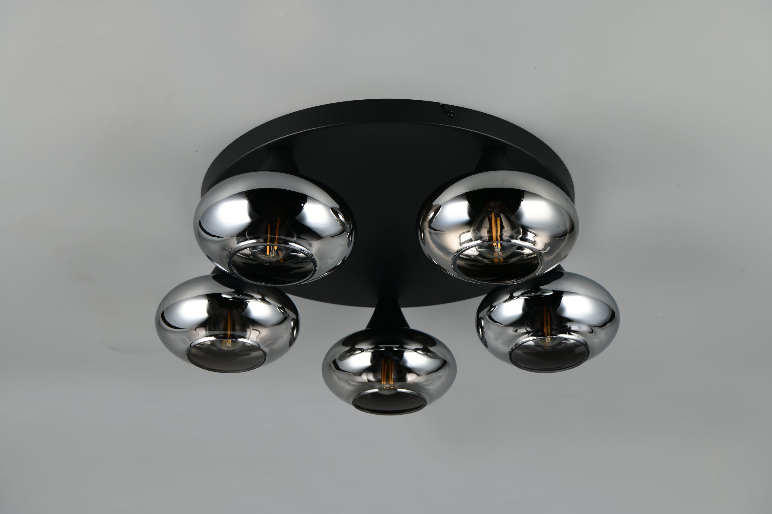 Matta-mustan ja savulasin lumoava yhdistelmä antaa viisilamppulliselle valaisimelle tyylikkään ja hillityn ilmeen.