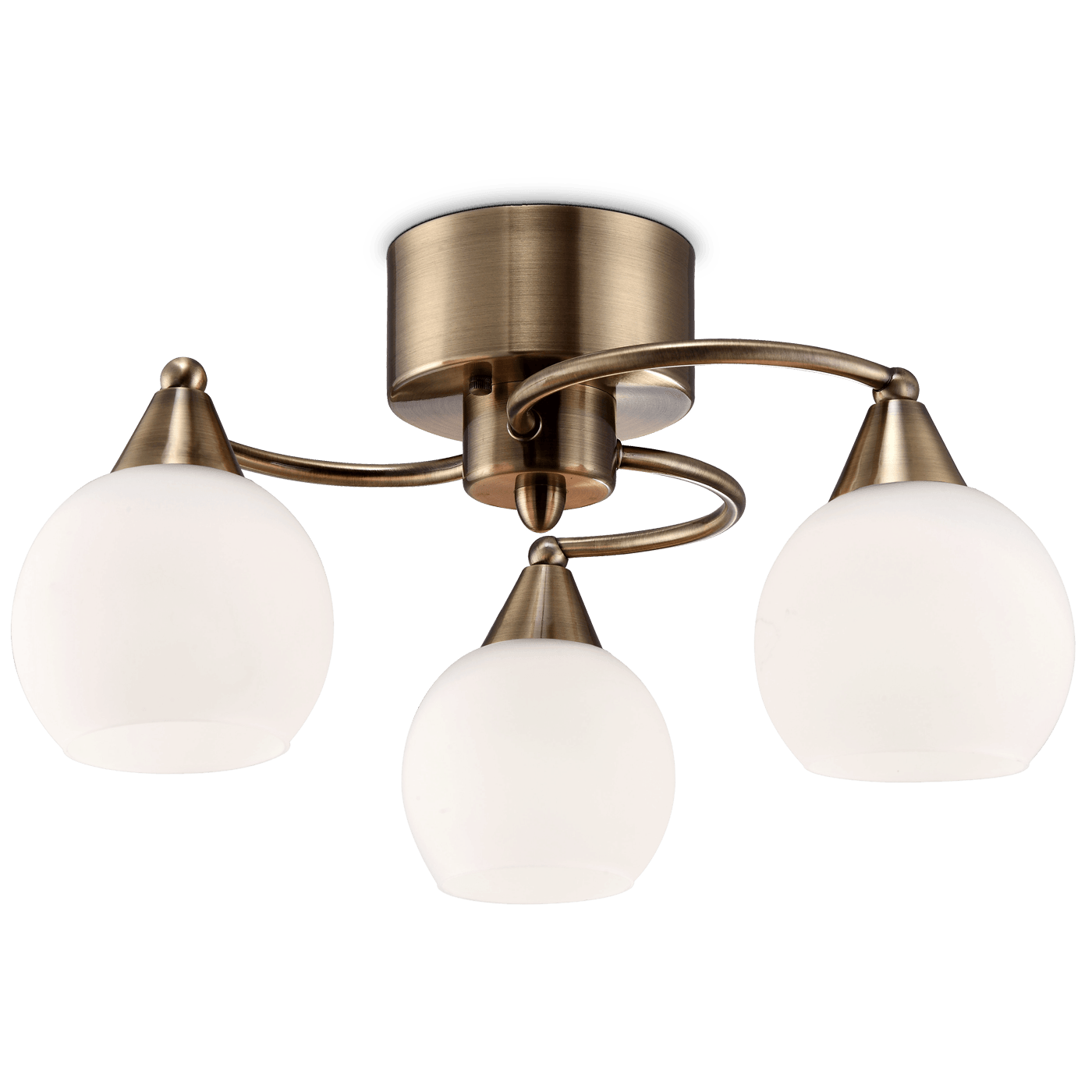 Kolmeosainen antiikkimessingin värinen Iris plafondi on tehokas ja tyylikäs kattovalaisin. Plafondi tuo modernia tyylikkyyttä kodin sisustukseen ja sopii useaan eri tilaan. Helppo asentaa koukkukiinnityksellä, valaisinpistotulppa sisältyy tuotteeseen. 3 X E14 / 40W.