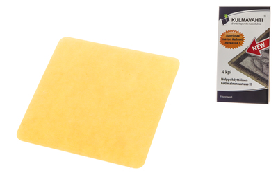 Kulmavahti on helppo ja nopea tapa suoristaa kiertyvät matonkulmat. Irroitat vain kulmavahdin suojapaperin ja kiinnität kulmavahdin maton kulmaan. Paksumpiin mattoihin voit laittaa kaksi kulmavahtia päällekkäin. Kulmavahti on myös saksilla muotoiltavissa oikeaan pyöreyteen. Suunniteltu ja valmistettu Suomessa. 4 kpl / paketti