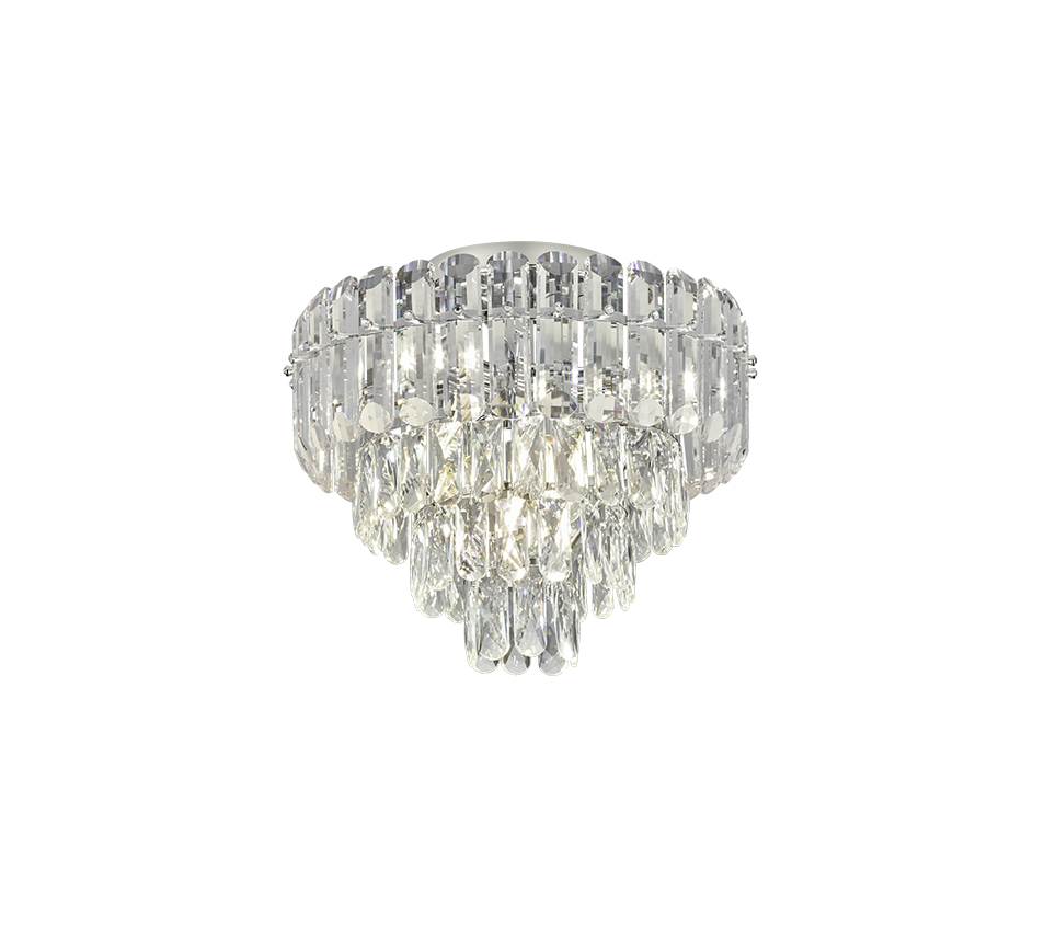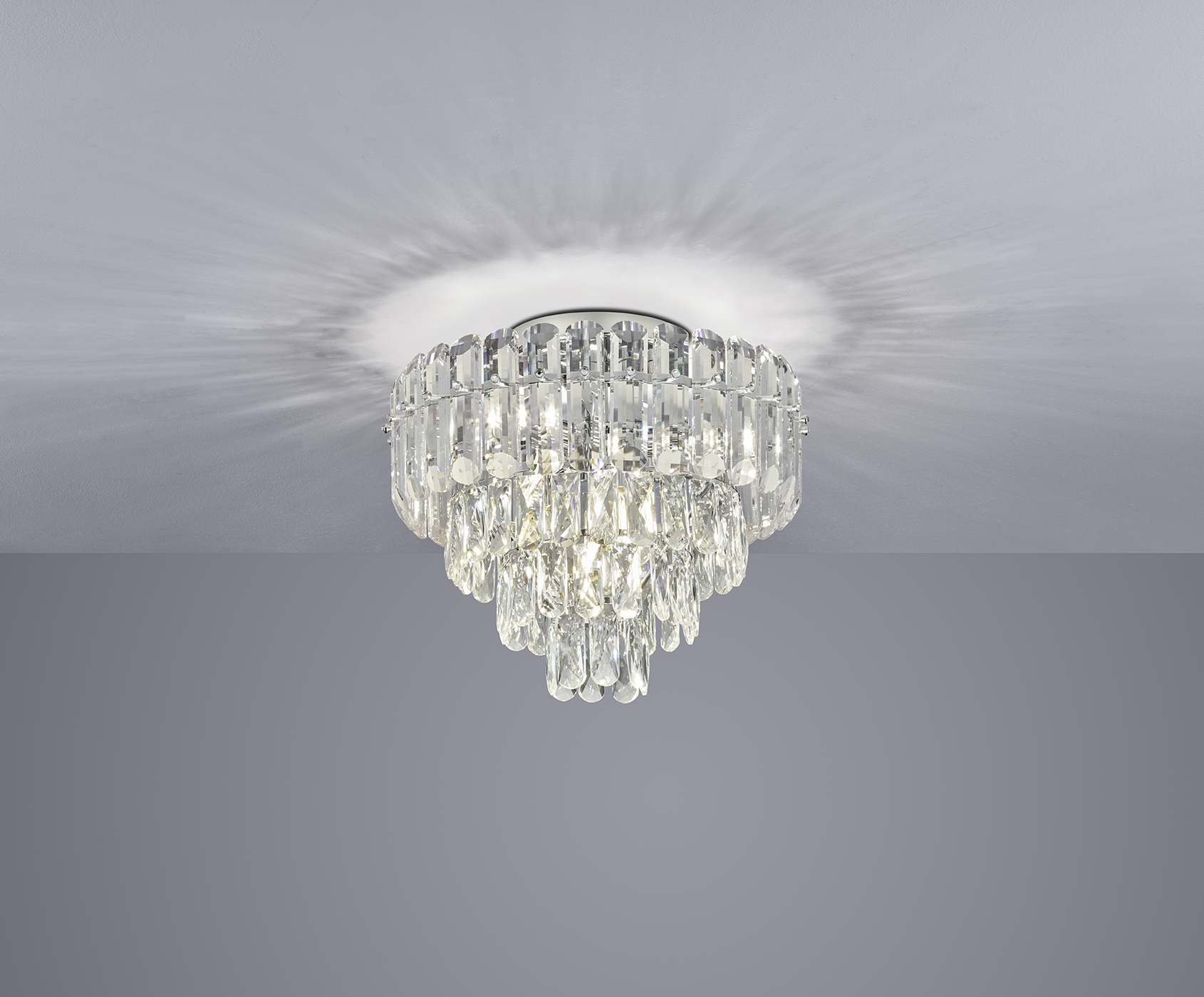 MALIZIA kattovalaisin tuo puhdasta glamouria huoneisiisi ja luo lumoavan valon ja varjon leikin kattoon ja ympäristöön. MALIZIA sopii ihanteellisesti ruokailu- tai olohuoneen pöydän yläpuolelle, ja se luo ylellistä tunnelmaa ja tyylikästä hienostuneisuutta. Läpinäkyvät kristallit ja krominvärinen metallirunko täydentävät toisiaan täydellisesti ja antavat valaisimelle tyylikkään ja modernin ilmeen
