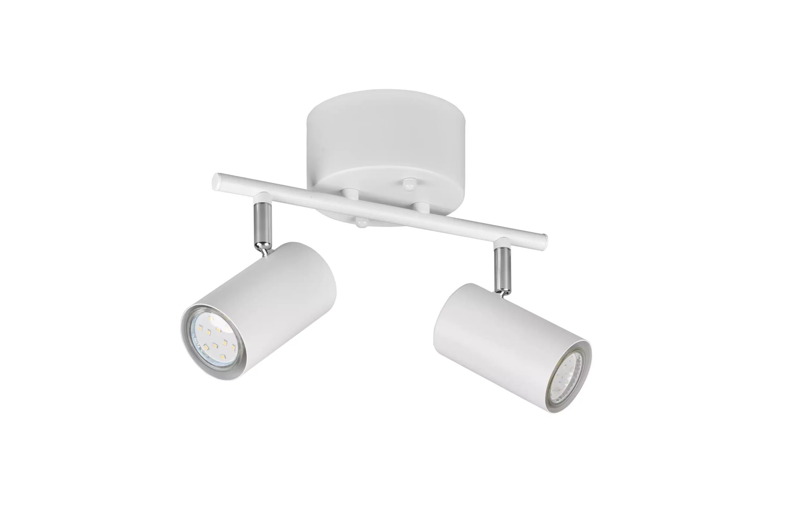 Kaksiosainen valaisin, jossa spottien kohdistusta on mahdollista säätää.  Valaisin on erittäin monikäyttöinen, sillä valoa voidaan suunnata haluttuun kohteeseen . Valkoisen värin ansiosta spotti-valaisin sulautuu upeasti erilaisiin sisustuksiin.