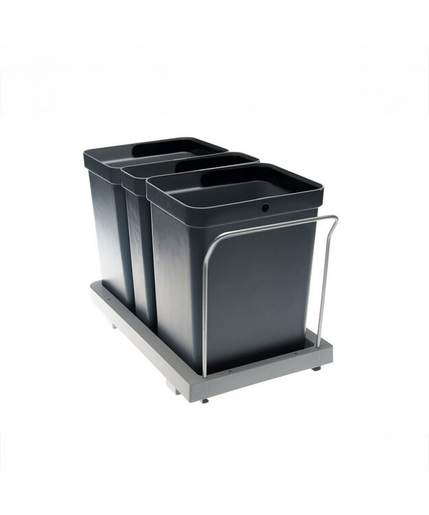 Jätevaunu kolmella  muovisella jätesangolla.