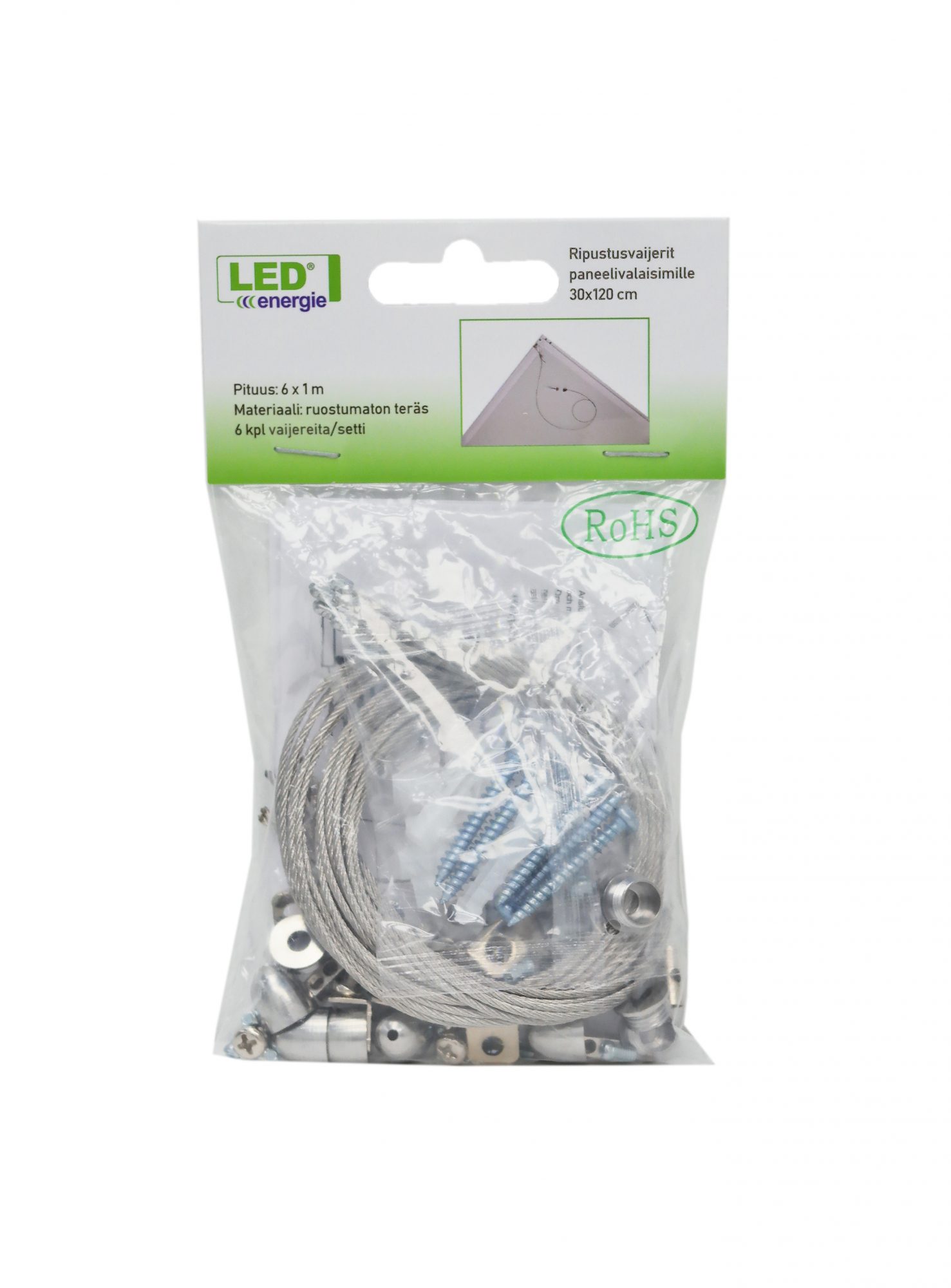 Ripustusvaijerisarja moduulipaneelivalaisimiin 30 x 120 cm, 6 kpl/setti