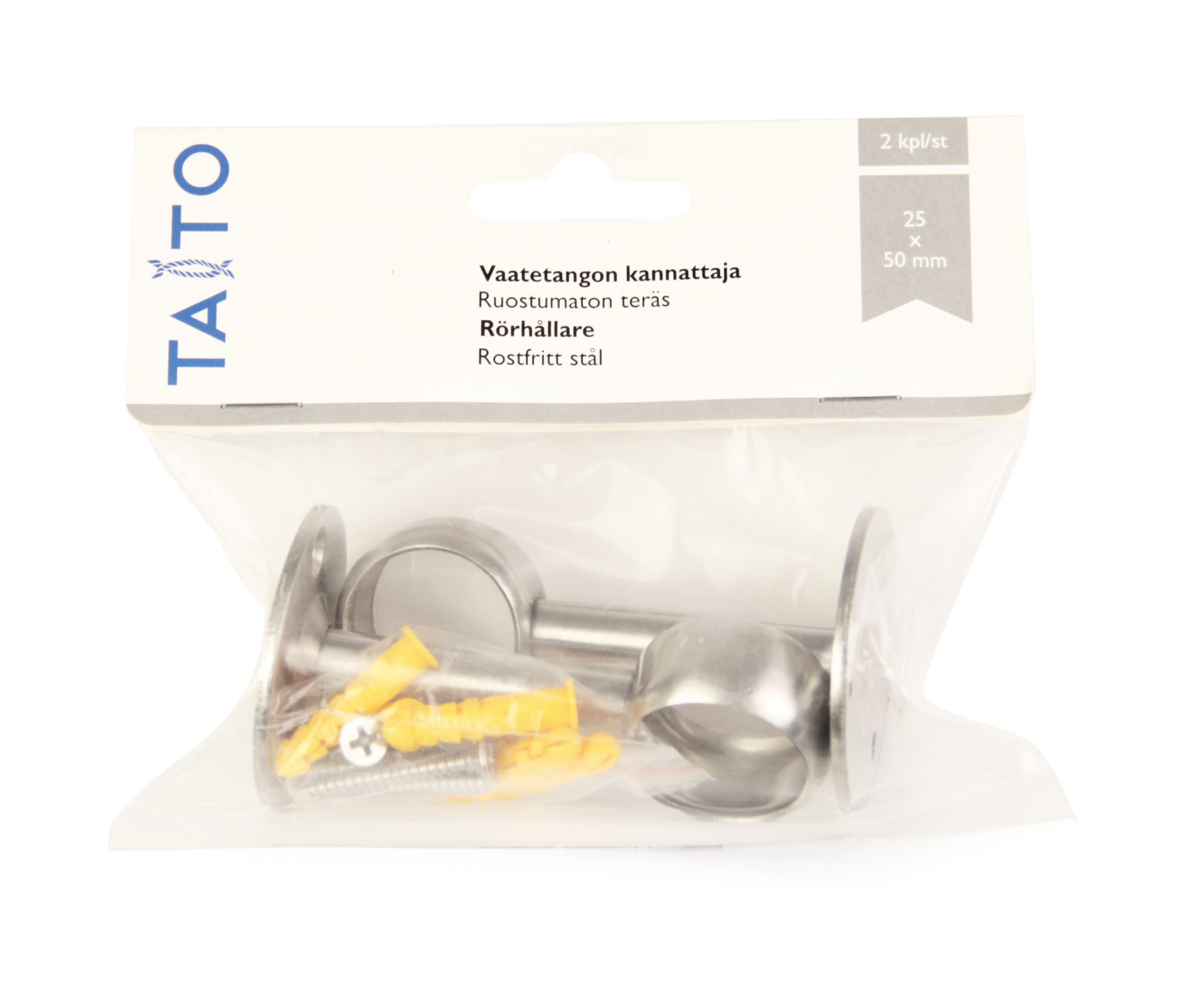 Metalliset putkipidikkeet sopivat Ø25 mm:n putkille, kuten vaatetangoille.