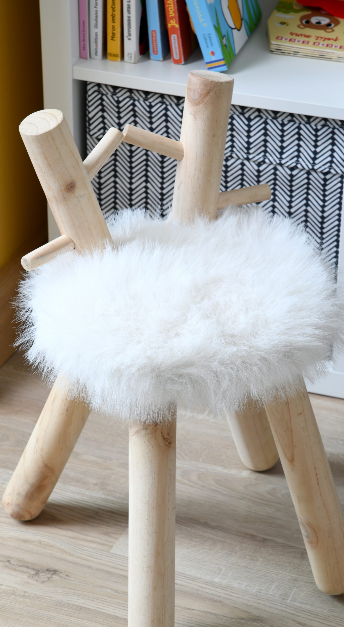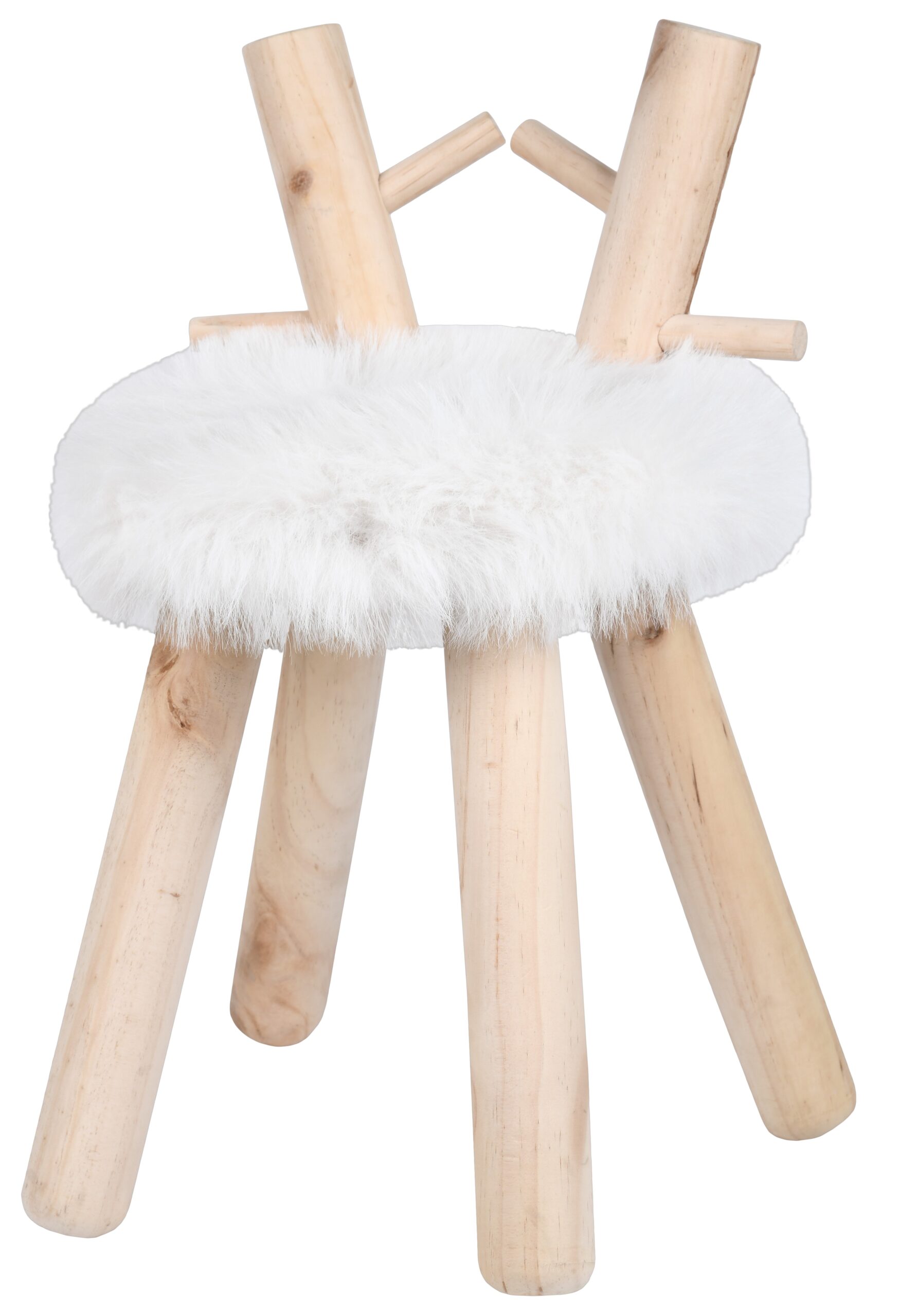 Puusta valmistettu pienikokoinen jakkara karva-päällysteellä