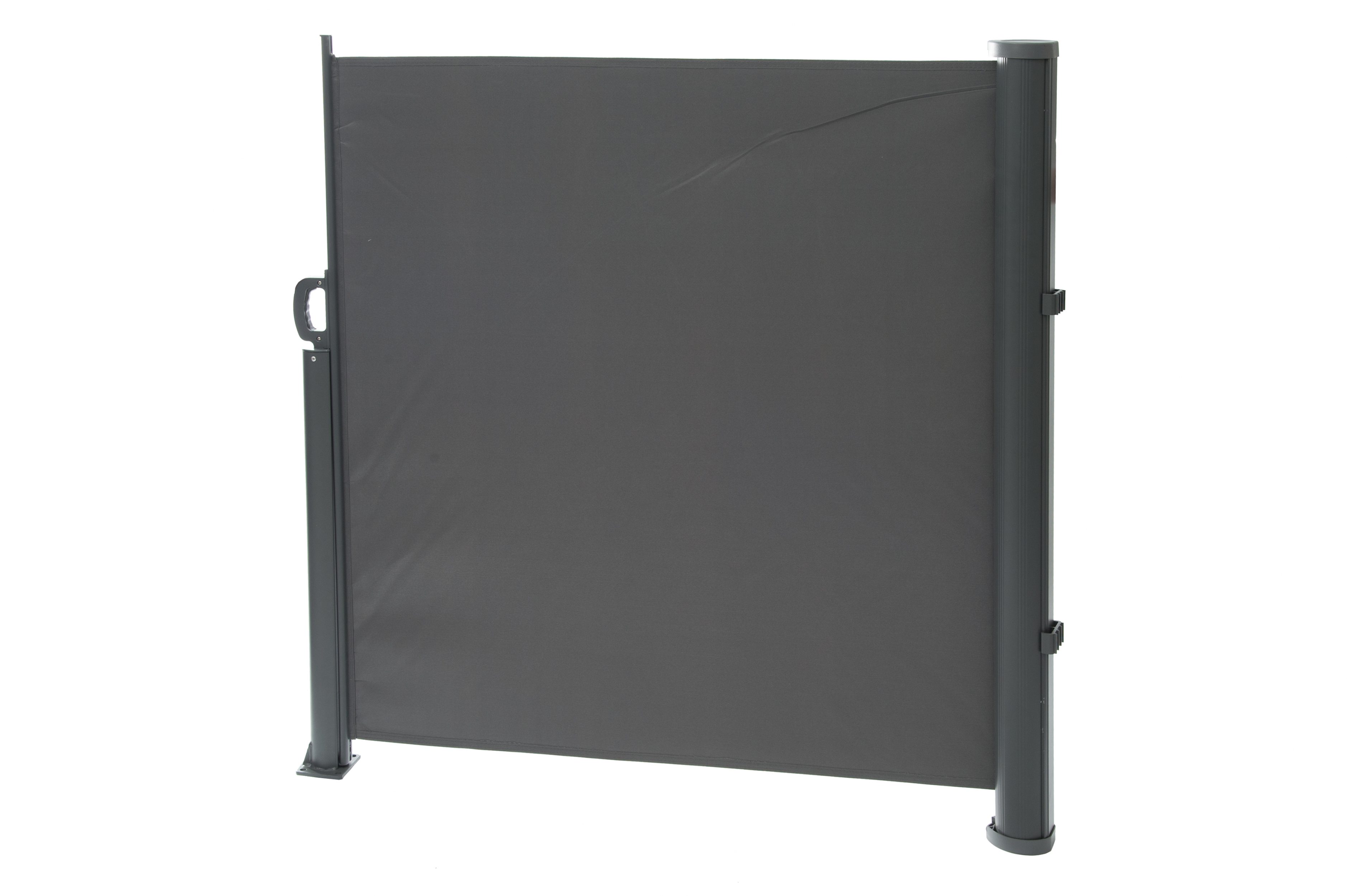 Alumiinirunkoinen 3×1,4m. 240g/m2 polyester. Hiilenharmaa yhteensuuntaan aukeava.