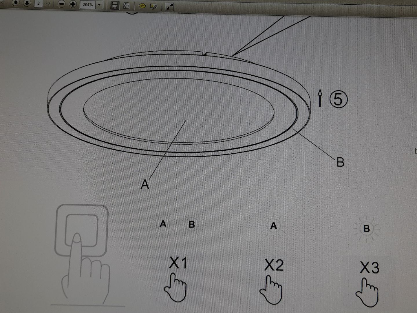 valaisimessa on kolme toimintoa,ohjataan tavallisella katkaisimella ( A ,B , A+B katso kuva)