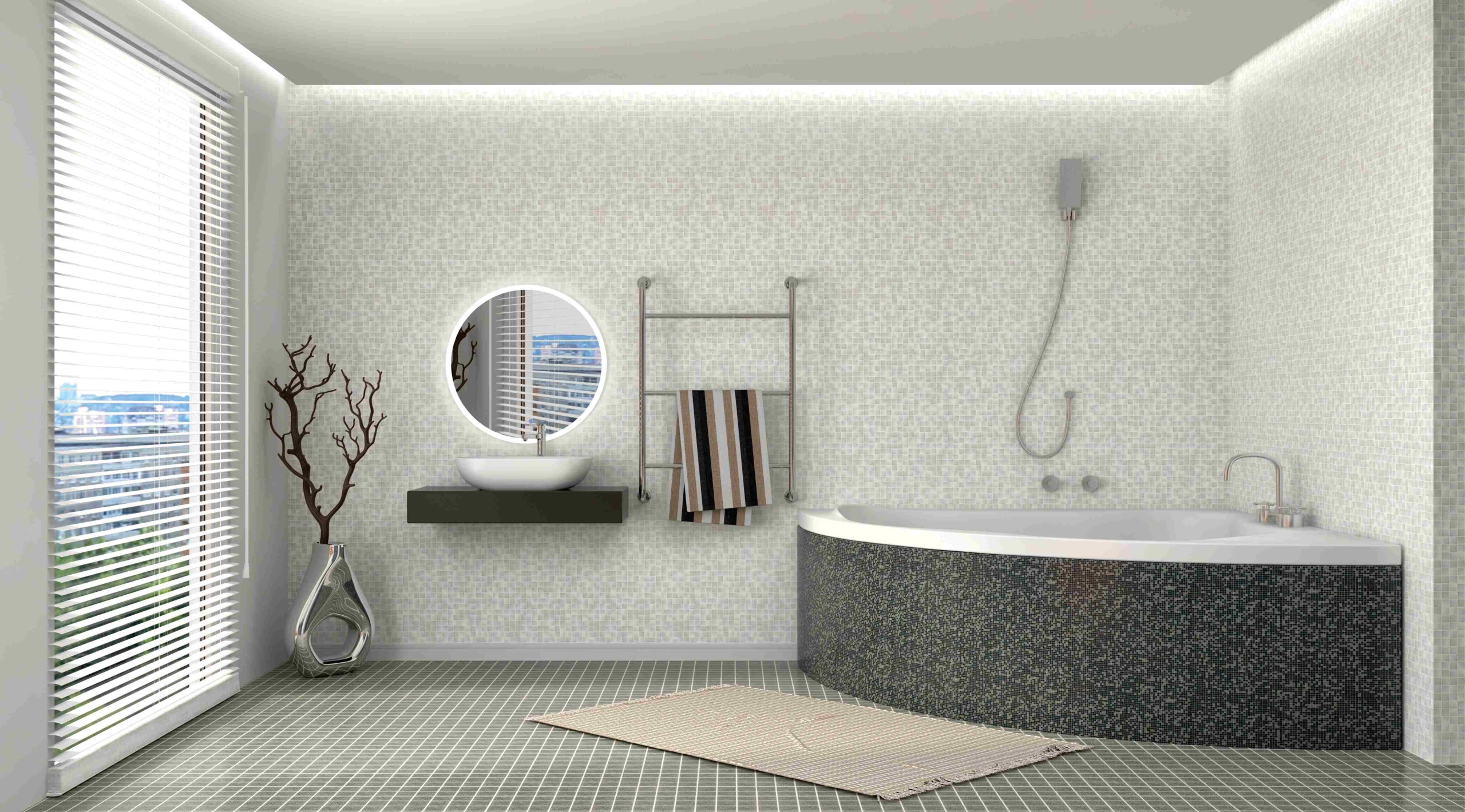 Pyöreä valopeili LED-nauhalla ja ON/OFF-painikkeella