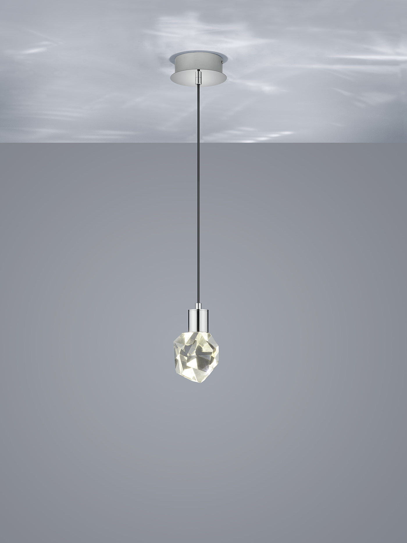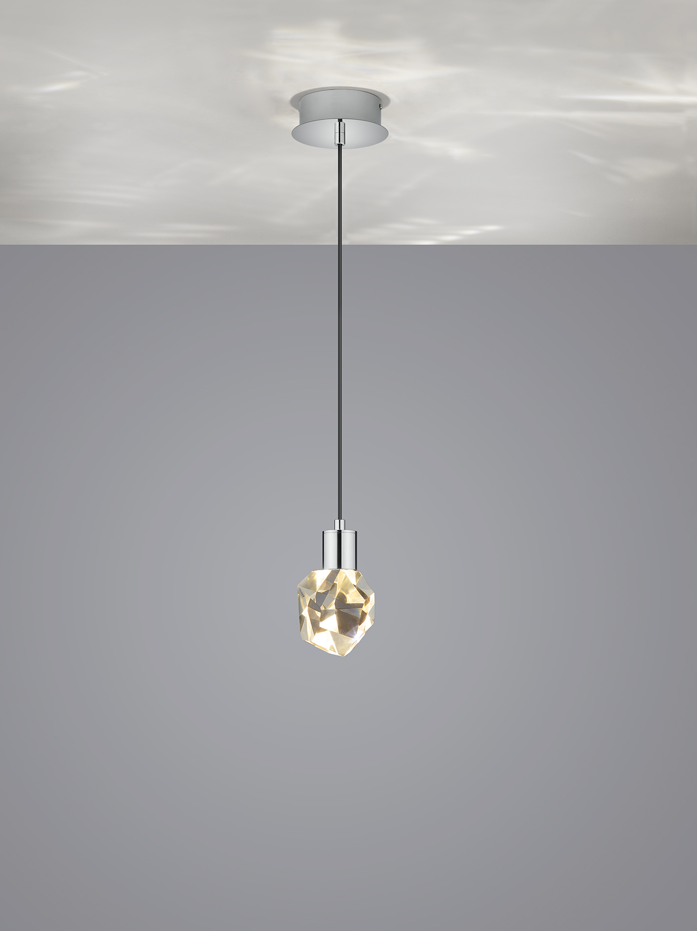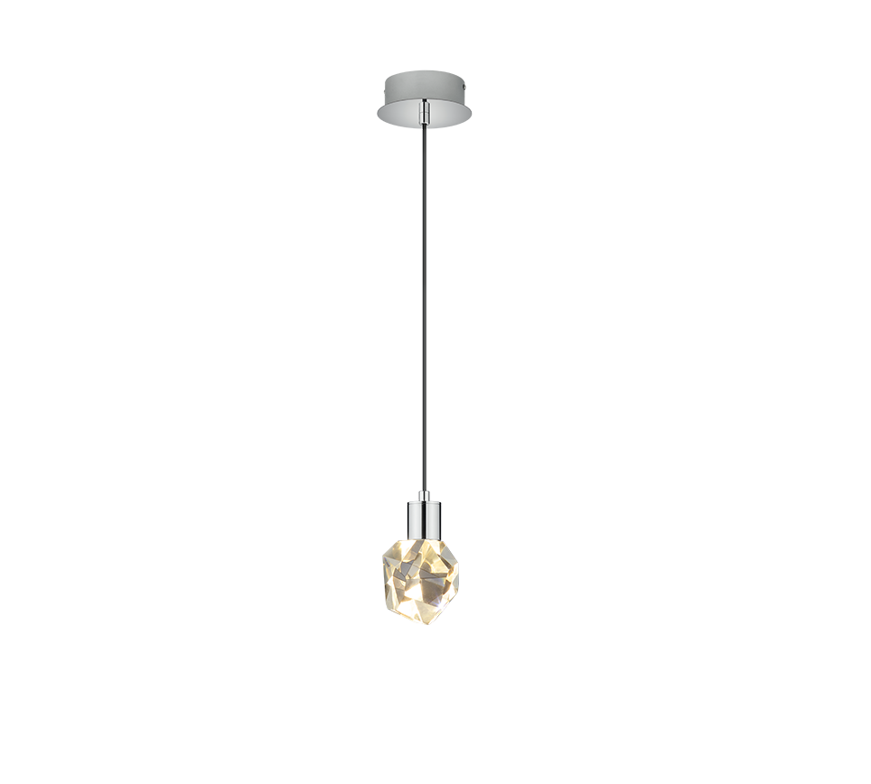 Läpinäkyvä kristalli ja krominvärinen metalli antavat valaisimelle ylellisen ilmeen.