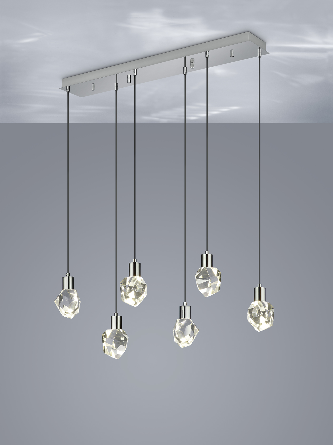 VERANO-riippuvalaisimessa yhdistyvät hieno kristalli luoden vaikuttavan valon ja varjon vuorovaikutuksen sekä korkealaatuinen krominen metalli