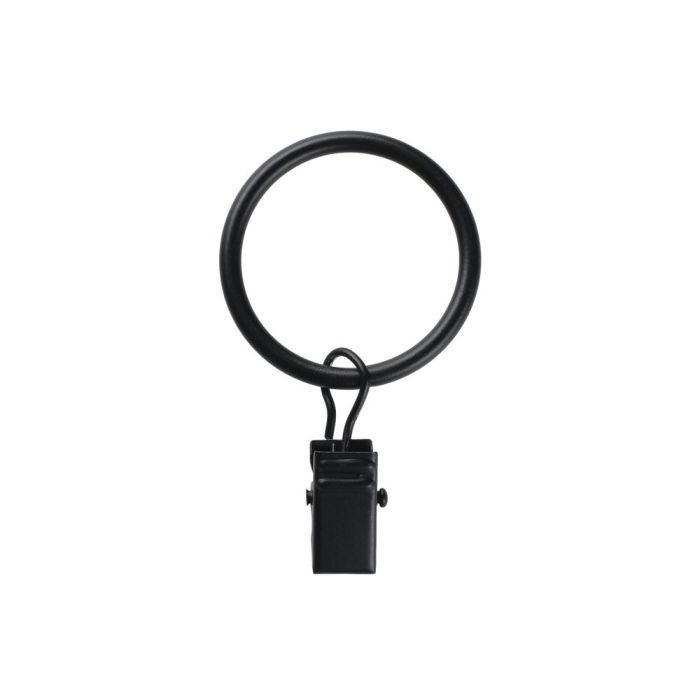 Metallinen verhorengas nipistimellä, renkaan halkaisija 3cm.