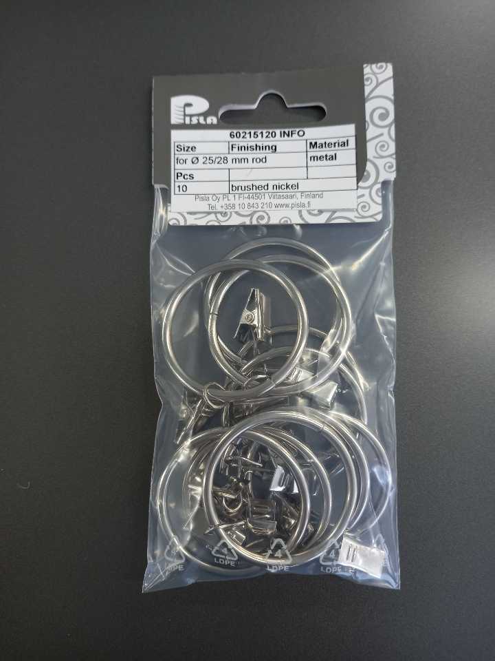 Metallinen verhorengas nipistimellä, renkaan sisähalkaisija 40 mm